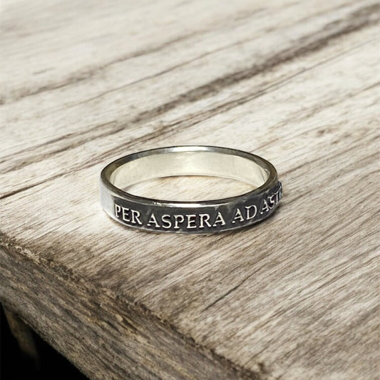 Women’s Sterling Silver Per Aspera Ad Astra Ring – Handmade Latin Inspirational Band | Backwoods Casting
