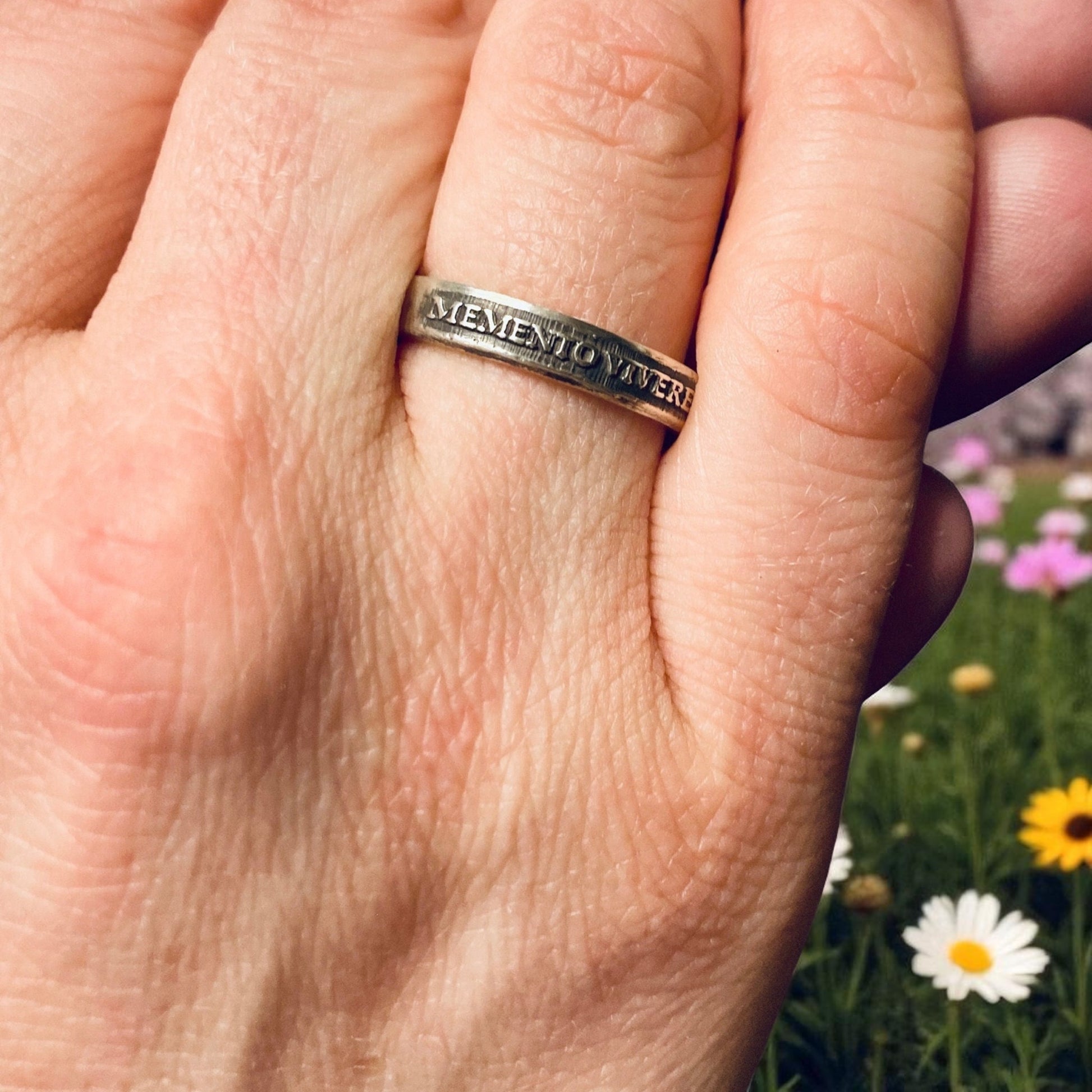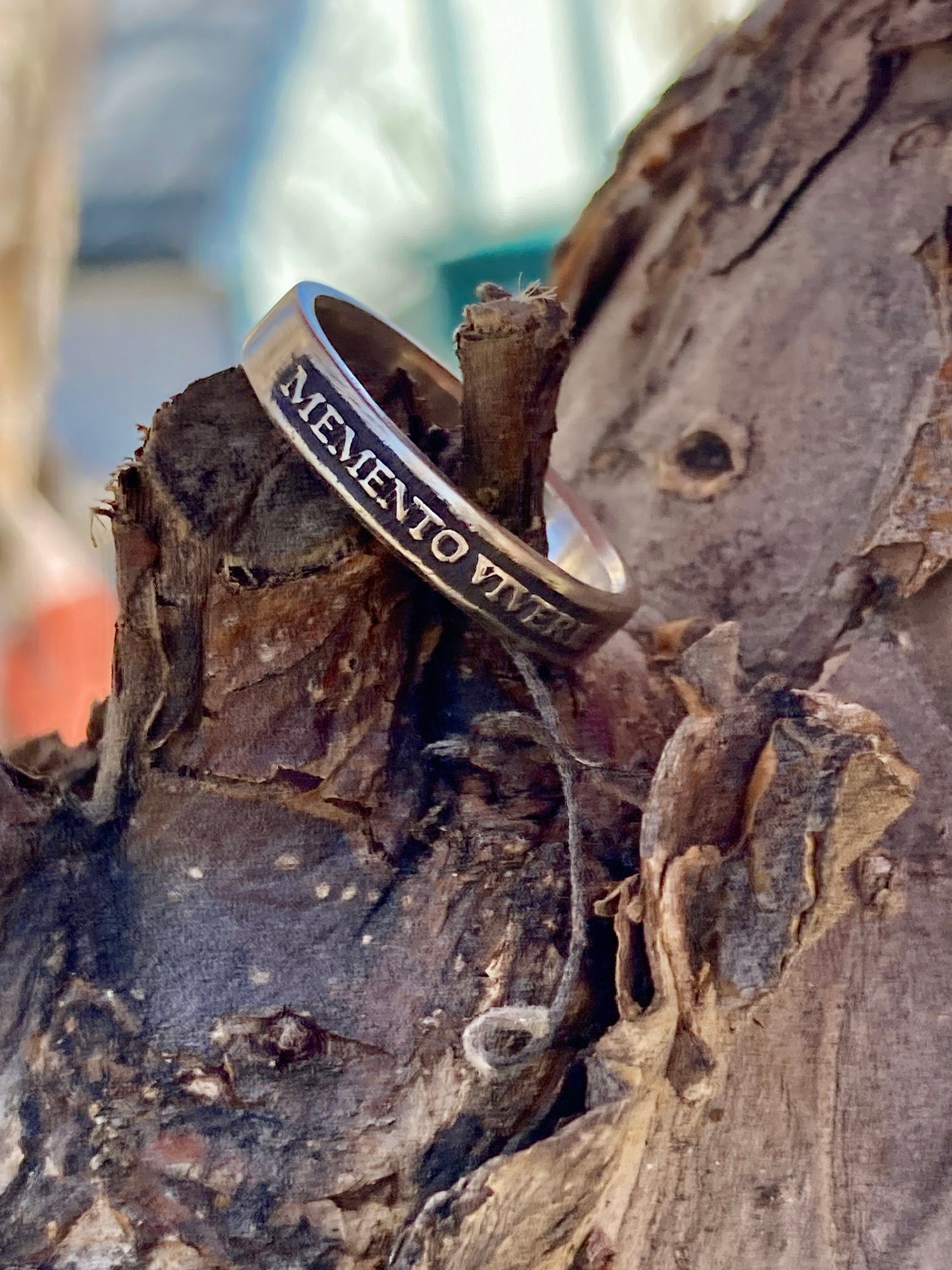 Women’s Sterling Silver Memento Vivere Ring – Handmade Latin Inspirational Band | Backwoods Casting